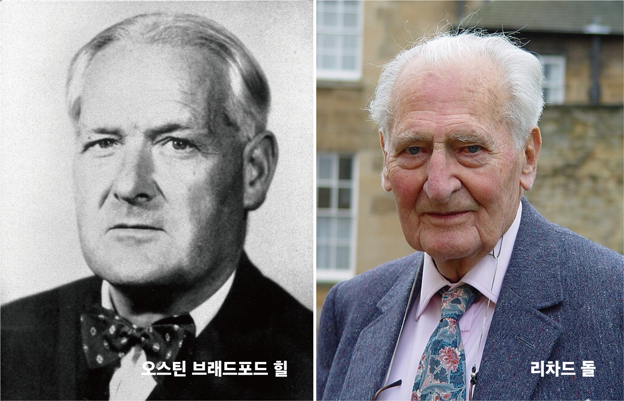 의학계는 당황했습니다. 폐암은 과거에는 드문 질병이었기에, 이 급격한 증가의 원인을 찾는 것이 시급한 과제였습니다. 영국 의학연구위원회(MRC)는 이 문제를 해결하기 위해 통계연구부서에 조사를 의뢰했습니다. 이곳에서 두 명의 연구자, 리처드 돌(Richard Doll)과 오스틴 브래드퍼드 힐(Austin Bradford Hill)이 역사적인 연구를 시작했습니다.