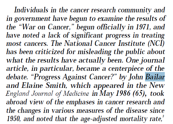 베일러의 분석은 암 연구계 전체를 긴장하게 만들었습니다. 그는 NCI(국립암연구소)를 비롯한 정부 기관과, 수십억 달러 규모의 항암 산업 구조에 문제를 제기했기 때문입니다.
